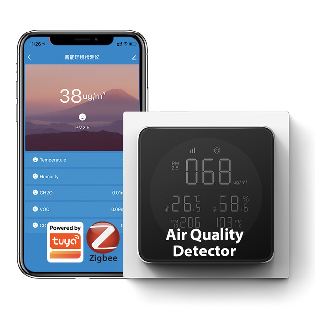 घर के को2 कार्टन मोनोऑक्साइड तापमान आर्द्रता pm10 pmm2.5 के लिए जिग्बी 3.0 स्मार्ट लिंकेज वायु गुणवत्ता वाले डिटेक्टर मॉनिटर